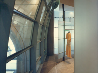 The result is most vividly expressed in the store’s iconic three story circular stair, a sculptural composition of steel and terrazzo that appears to float within translucent glass walls—both a functional centerpiece and an architectural statement.
