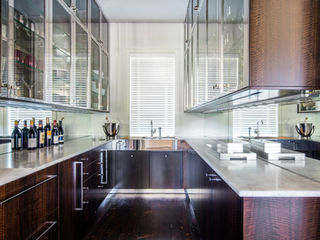 These clients had thoroughly contemporary tastes , but recognized that some connection had to be made to the exterior architecture, doors, windows, balconies and overhangs. In addition, the entire project, from start of design to final installation had to be done in six months.